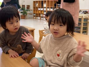 「Tくんは体操が大好きなんだよね」とみんなに紹介すると、「そ!(たいそう!)」と言いながらお気に入りの体操の振付を見せてくれましたよ。