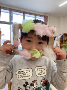 また別の日には色綿を使って製作をしました。