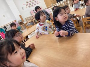 いつもは食べたい子から自由におやつの時間になりますが、今日だけはみんなで一緒に♡