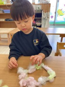 また別の日には色綿を使って製作をしました。