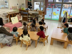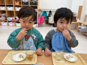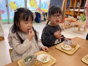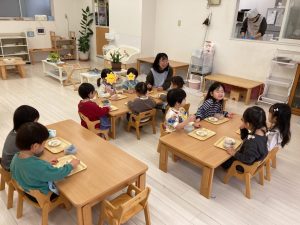 いつもは食べたい子から自由におやつの時間になりますが、今日だけはみんなで一緒に♡